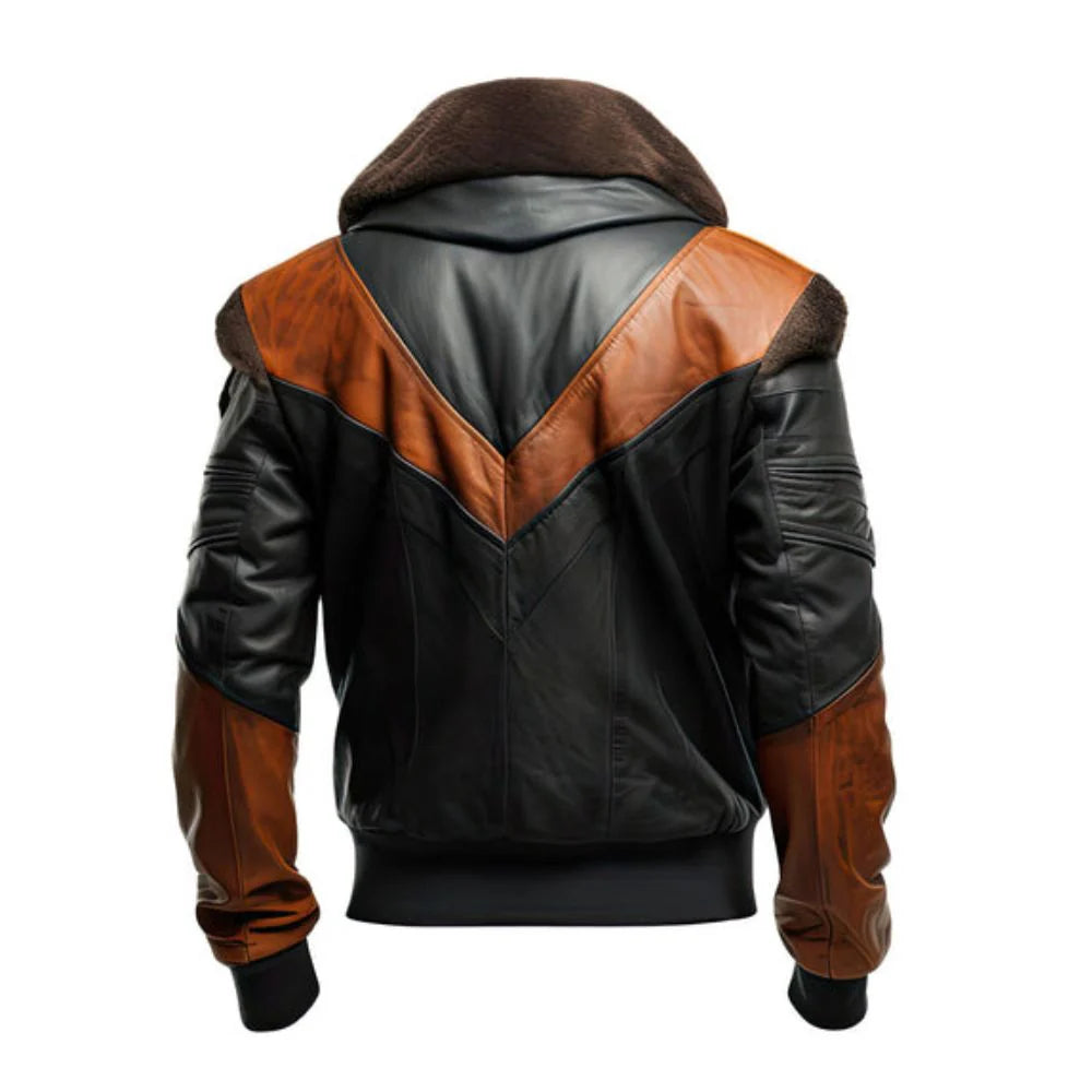 This brown and black leather jacket expertly combines well-known design elements with a contemporary twist, making it a classic piece. It is composed of premium sheepskin leather. The jacket's design is modeled in black and brown, which go well together to provide a visually appealing piece. In addition to having zipper side pockets and a closure, the jacket's fur collar protects against the cold and gives it a somewhat rugged appearance, while its ribbed hem and cuffs provide comfort. This leather jacket is an essential piece that exemplifies impeccable design.