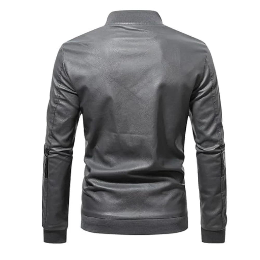 This fashionable and functional men's genuine sheepskin leather jacket is slim fit. Made from premium sheepskin leather, it provides a plush feel without sacrificing toughness. The jacket has a traditional bomber silhouette. Black leather jacket men slim fit is ideal for both professional and informal settings because of the sophisticated touch that the sleek grey hue offers. The striking black stripes on the armpits and elbows of this jacket are one of its most notable features; they give it a contemporary and edgy look. The numerous pockets offer plenty of room for storing necessities, and the zipper clasp makes wearing it simple. The jacket is an essential piece for any man's wardrobe because it is made to be both fashionable and practical.