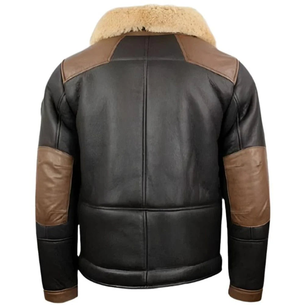 Wear this gorgeous suede bomber leather jacket to experience the ultimate in winter fashion. The body is made of suede leather from high-quality suppliers and has shearling lining for warmth and comfort. A timeless bomber with a shearling shirt collar and a zip-front fastening is always classy. The cropped design and modest fit fit most body shapes, and the many pockets provide ample storage. The contrast of black and brown gives your clothes sophistication and versatility.
