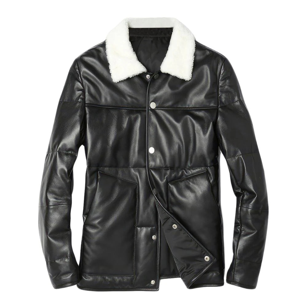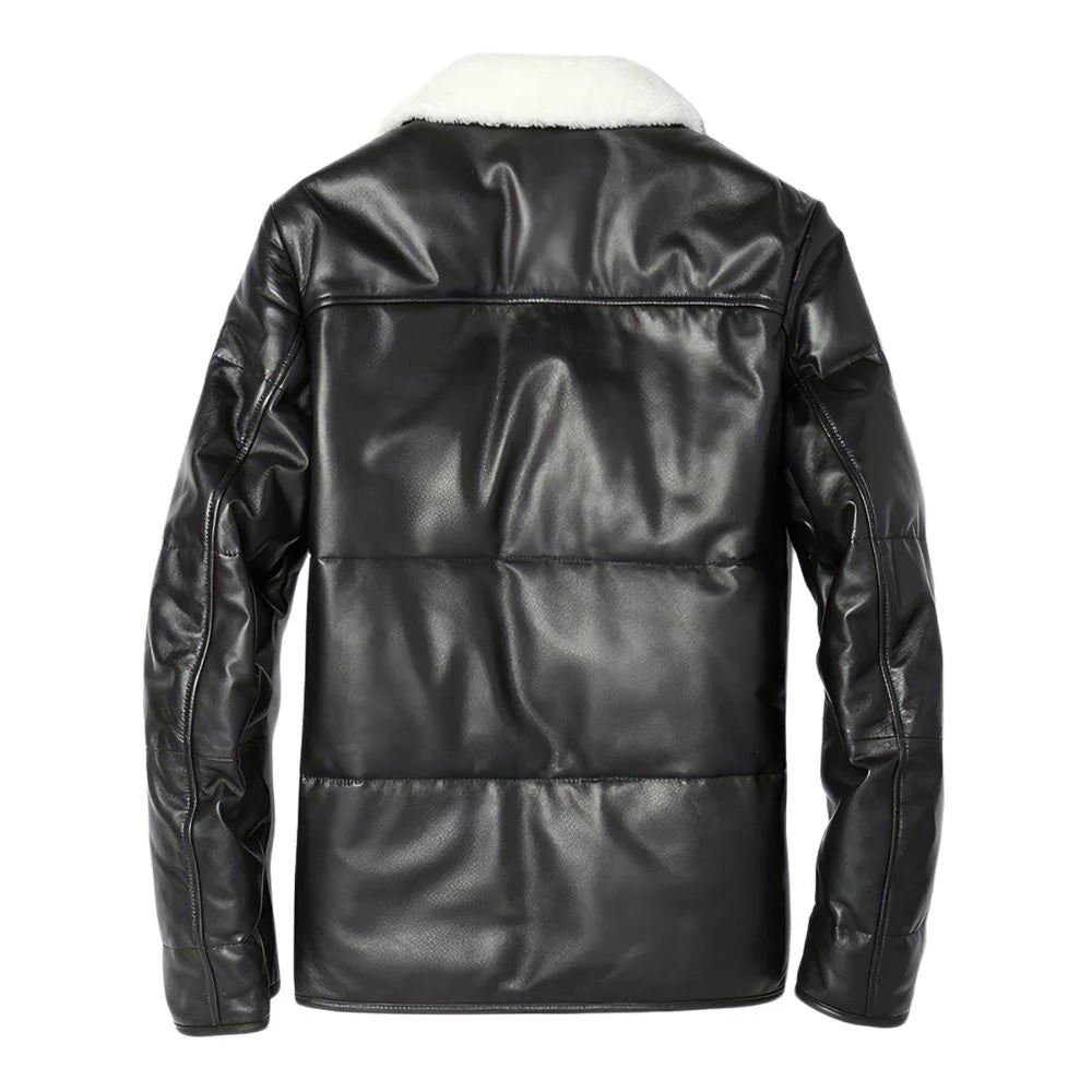 Real sheepskin leather is used to make the Men's A2 aviator jacket. The A2 aviator jacket is stuffed with plush faux shearling fur for extra warmth and comfort, and it has a traditional stand-up collar. Even in the coldest winter, you will be warm thanks to the additional insulation provided by the contrasting white lining of the fake shearling fur collar. A tight fit and protection from the cold are guaranteed by the strong snap-button clasp. A little of casual appeal is added with the button-up closure. A classic design that blends the tough appeal of a classic leather jacket with a modern edge is the men's A2 aviator Air Force Flight black genuine leather jacket. Inspired by the iconic A2 Aviator, the quilted body provides both elegance and insulation, making it ideal for chilly weather.