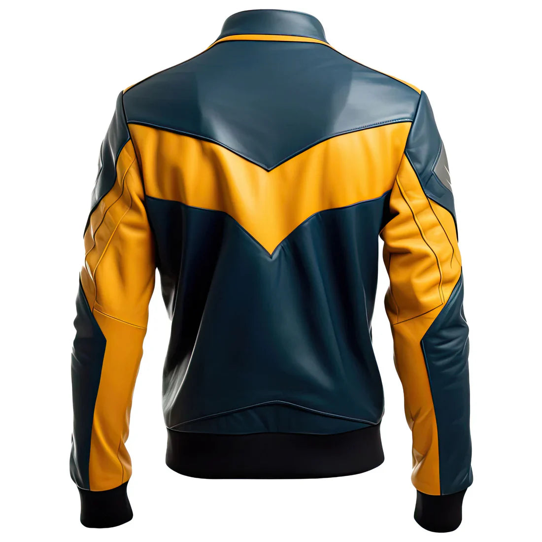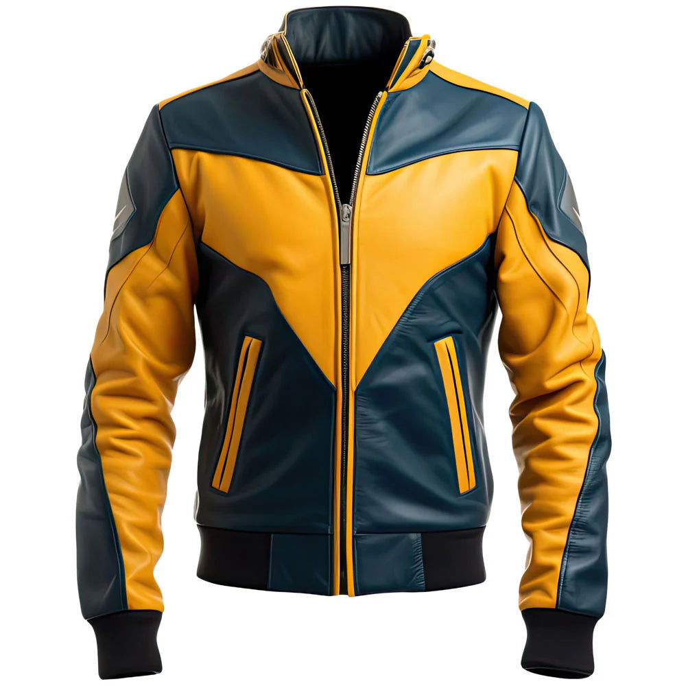 The leather jacket is a striking combination of mustard yellow and dark blue. The waistline, cuffs, and collar of this bomber-style jacket are all ribbed. It features two slanted pockets on the waist side and a front zip fastening. The jacket is likely to be long-lasting and warm due to its genuine leather exterior material. The color scheme is pleasant and maintains adaptability. Mustard yellow is a bright and cheery color that will definitely draw attention to the wearer, while dark blue is a formal and professional hue. The contrast between the two hues creates a visually appealing structure and style. The jacket is well constructed and has a feel of quality. The leather is not only thick but soft and supple while the stitches are straight and well done. The jacket is pleasing to the body too, and can be worn for long periods without discomfort.