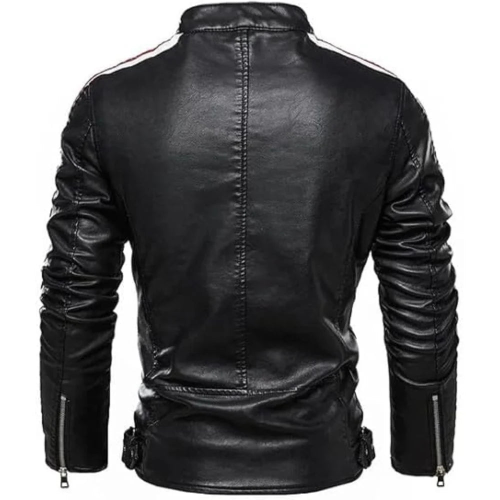 Men's High-quality Fashion Motorcycle Style Casual Warm Red & Black Zipper Leather Jacket